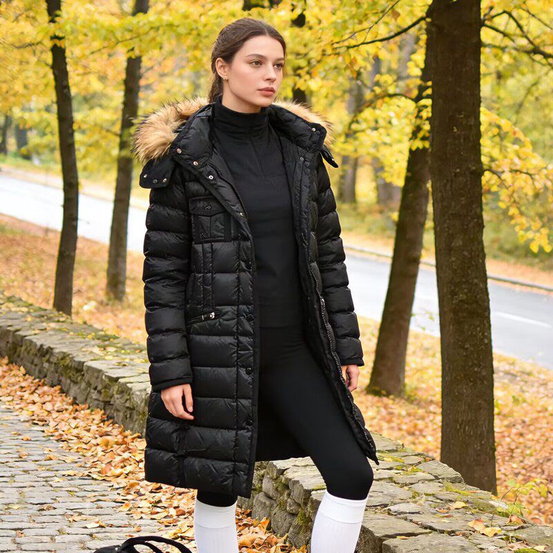 外贸尾货欧美单中长款 女款 收腰修身 显瘦羽绒服防风保暖 鹅绒服冬季