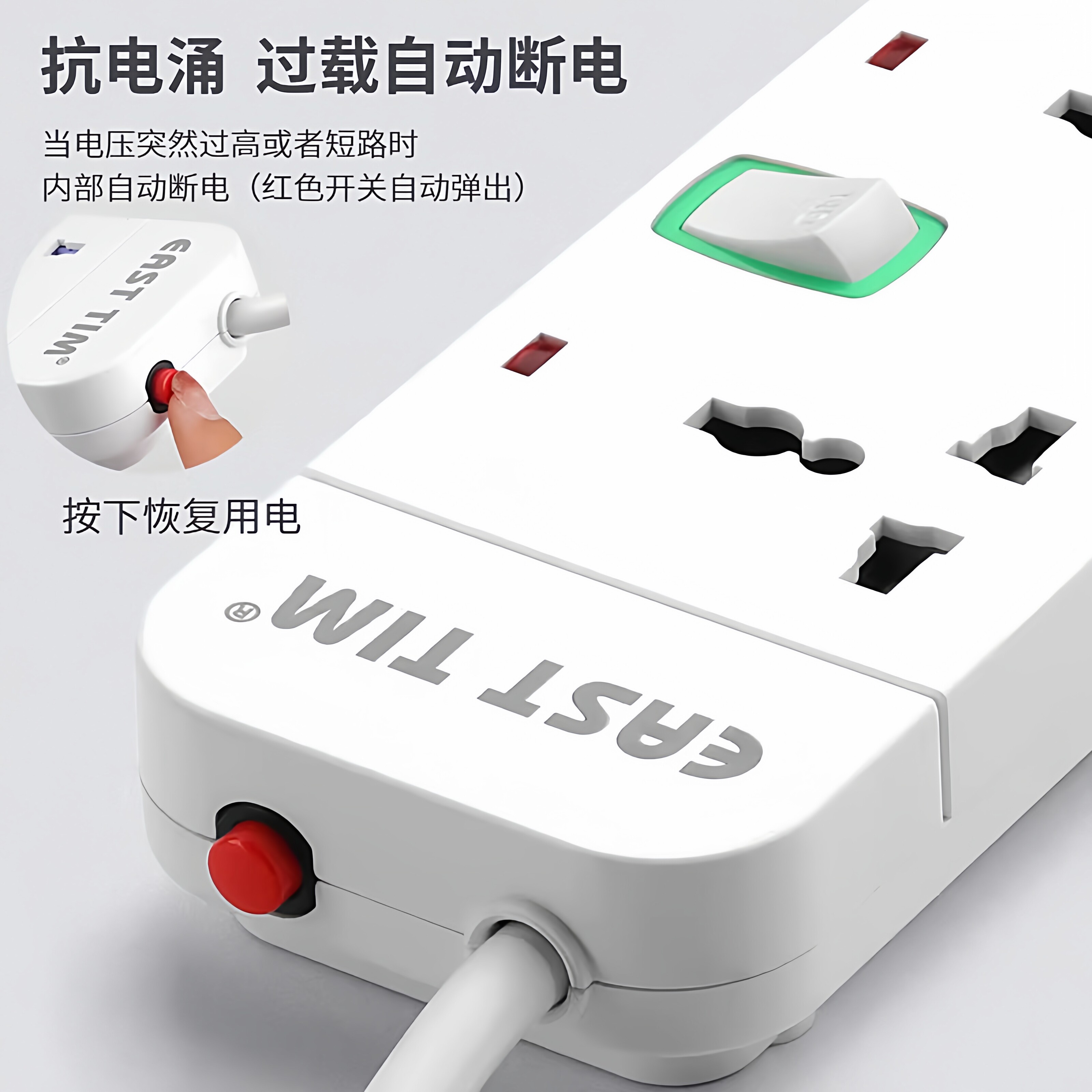 喜美诺排插插座面板多孔排插家用宿舍接线板插排国标线板延长线