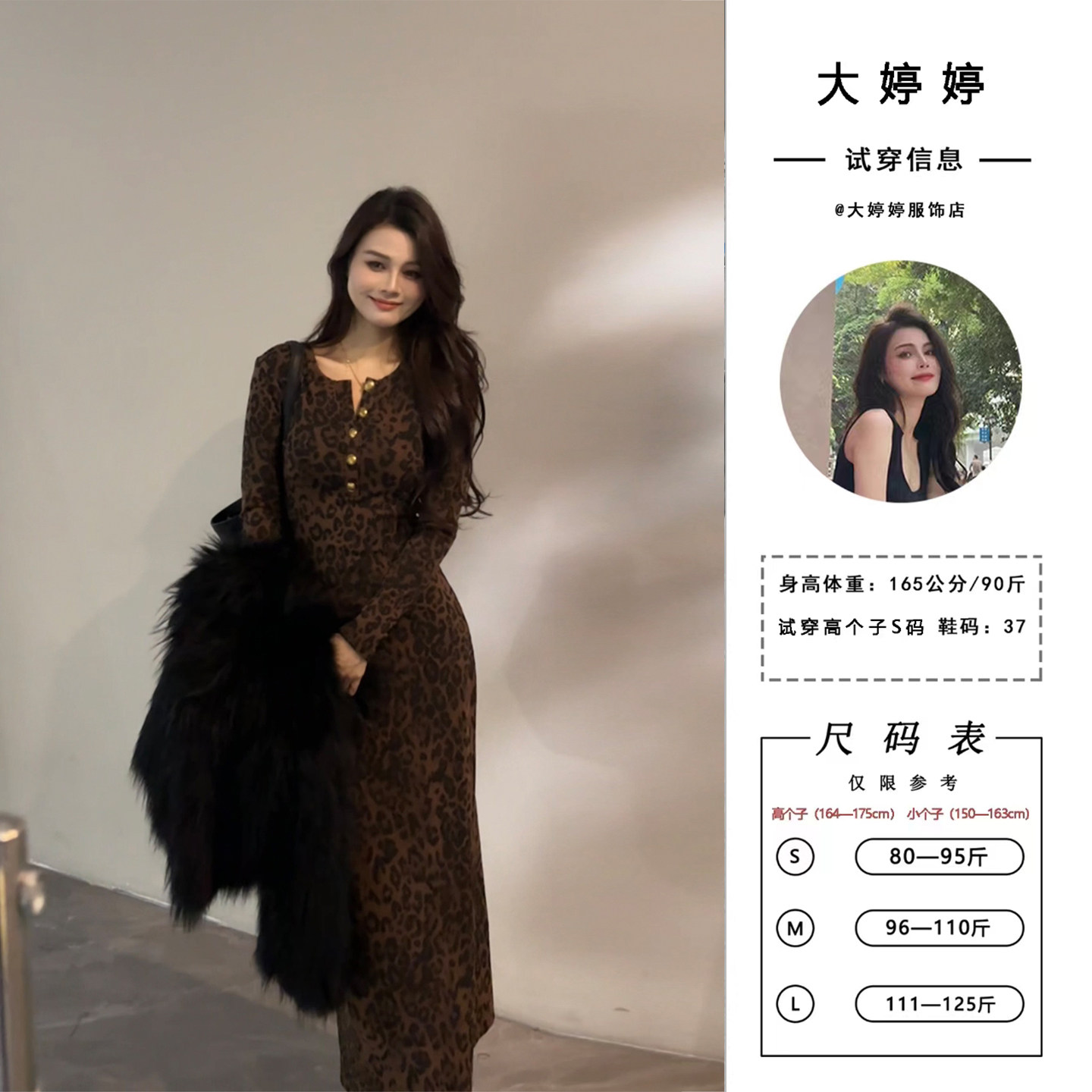 为您提供商品豹纹复古显瘦修身 大婷婷 秋冬新款 时尚 裙子DT1859 轻奢连衣裙长袖的详细介绍,
