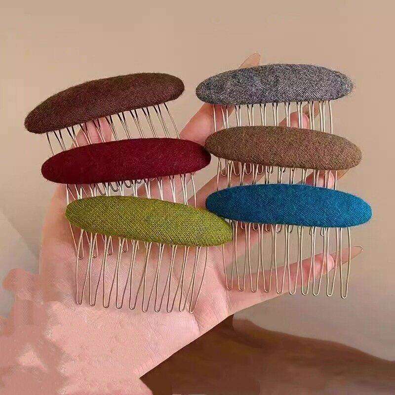 复古毛呢倒插梳发夹女碎发整理神器发梳公主头侧边夹刘海固定发卡