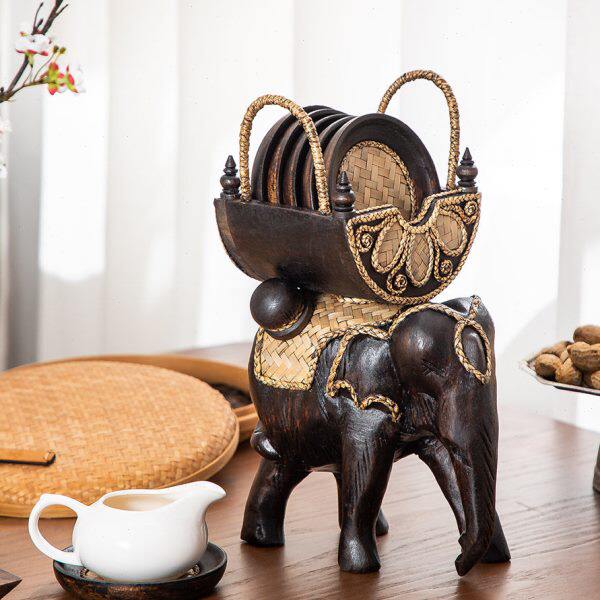 泰式 饰杯垫 实木藤编杯垫圆形复古创意茶杯水杯隔热酒吧咖啡餐厅装