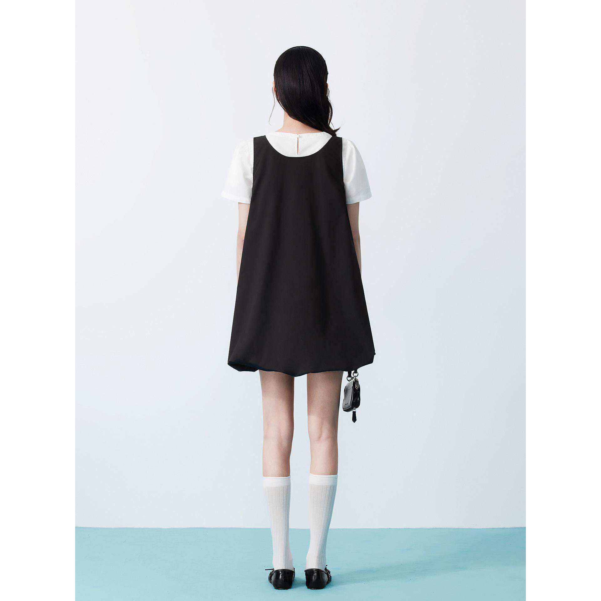 太平鸟郁金香花苞腰部捏褶显瘦假两件连衣裙 达播专属