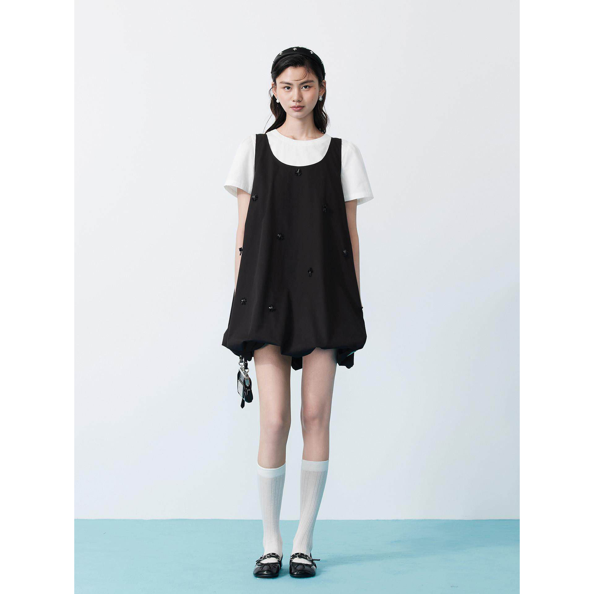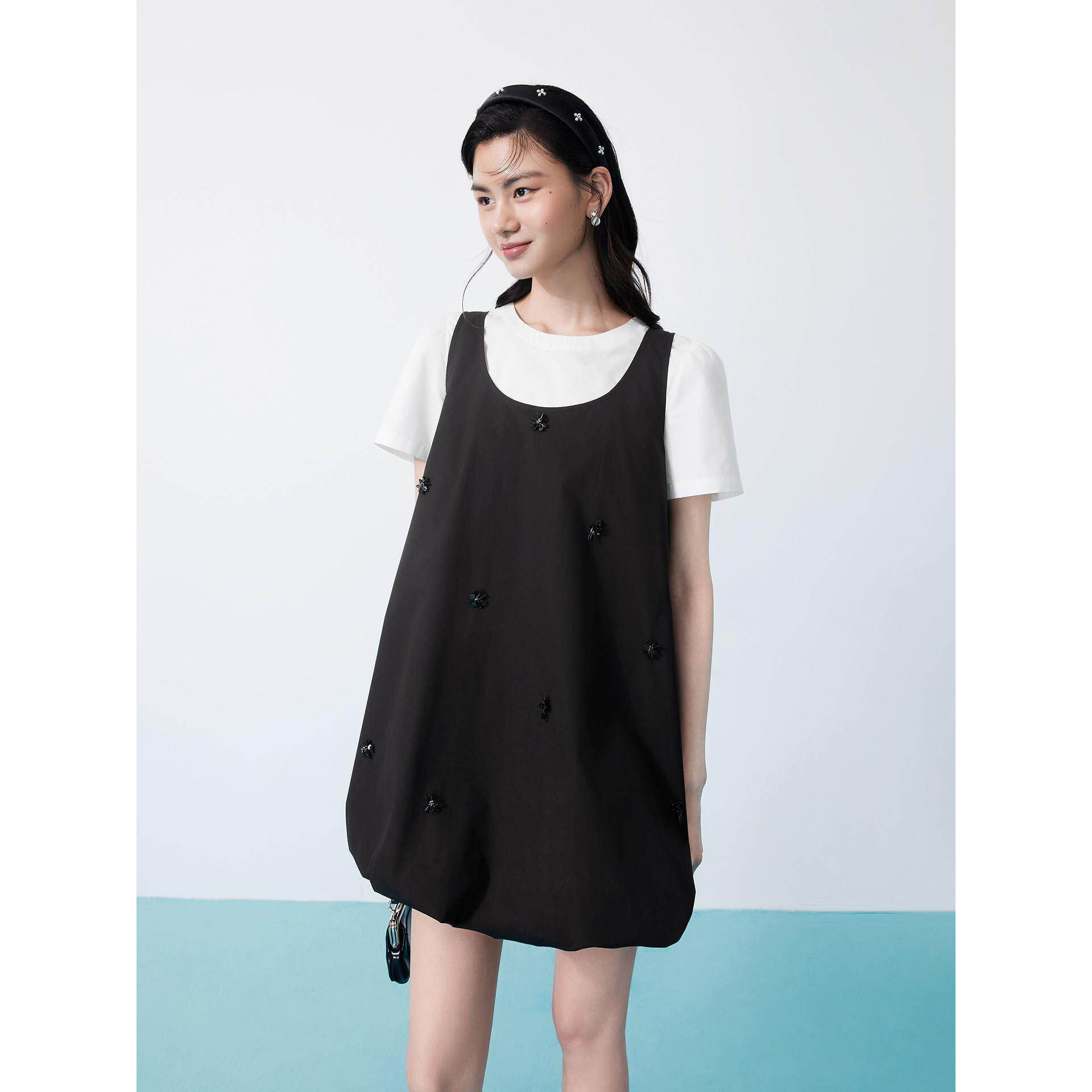 两件套连衣裙女夏新款 钉珠装 饰花苞裙女C1FAG2245 商场同款