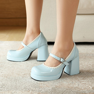 单鞋 48特大码 增高防水台漆皮玛丽珍法式 子 cosplay女lo粗跟女鞋