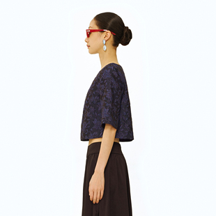 为您提供商品T恤时尚 Linqiaozhi林乔芝夏季 新品 绣花提花短袖 设计感上衣女 个性的详细介绍,