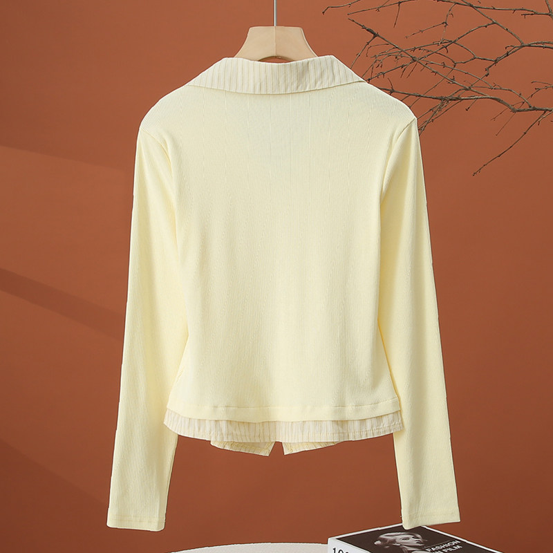 小个子短款 假两件长袖 上衣 小衫 洋气时尚 polo领t恤女春季 2026新款