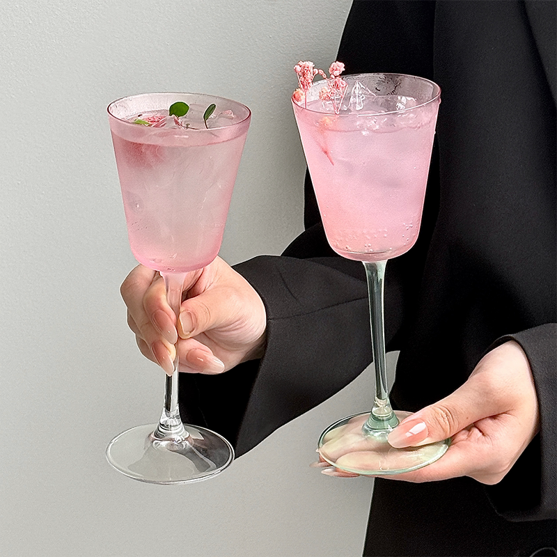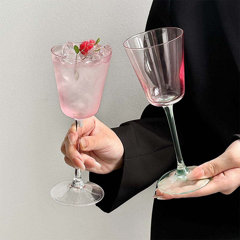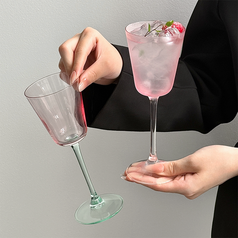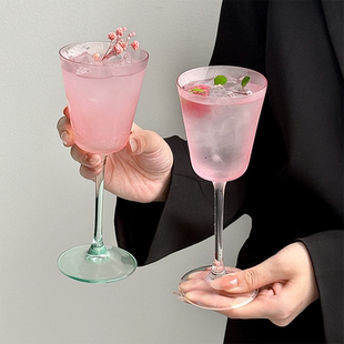 夏日薄荷绿撞色高脚玻璃杯特调甜酒杯果汁杯微醺鸡尾酒杯香槟杯