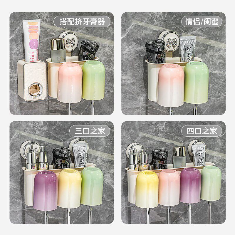 家庭卫生间电动牙刷架子 吸盘牙刷置物架免打孔漱口杯刷牙杯壁挂式