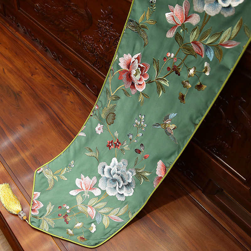 中式 床旗茶几布玄关电视柜饰布 刺绣桌旗现代茶几桌旗欧式