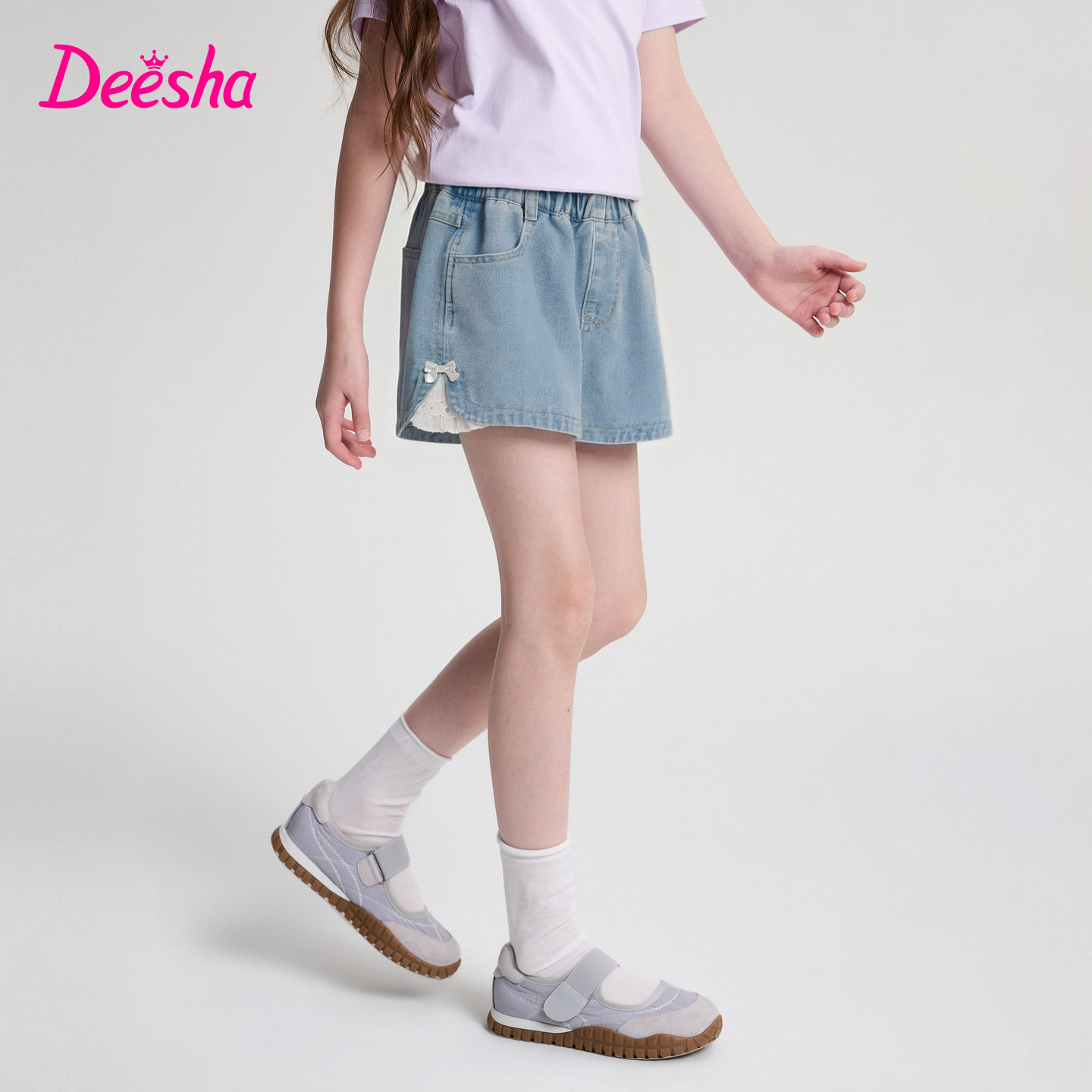 新款 夏季 女童短裤 子 牛仔短裤 裤 大童女孩儿童洋气时尚 笛莎官方童装由