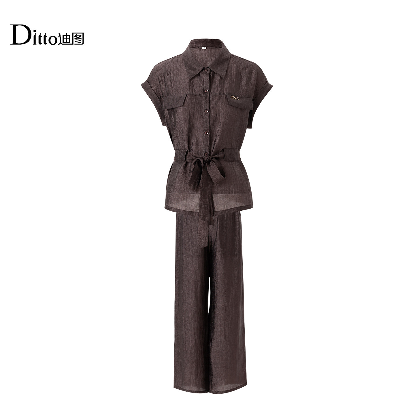 为您提供商品迪图醋酸衬衫 两件套女2026夏季 时髦洋气御姐范职业通勤套装 阔腿裤的详细介绍,