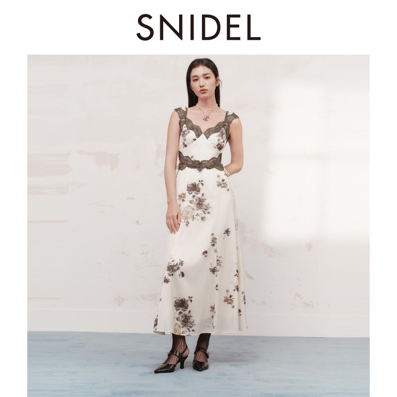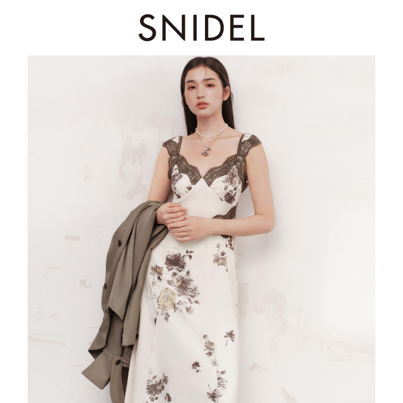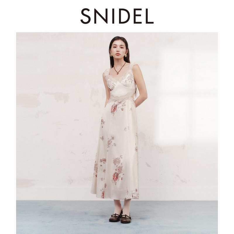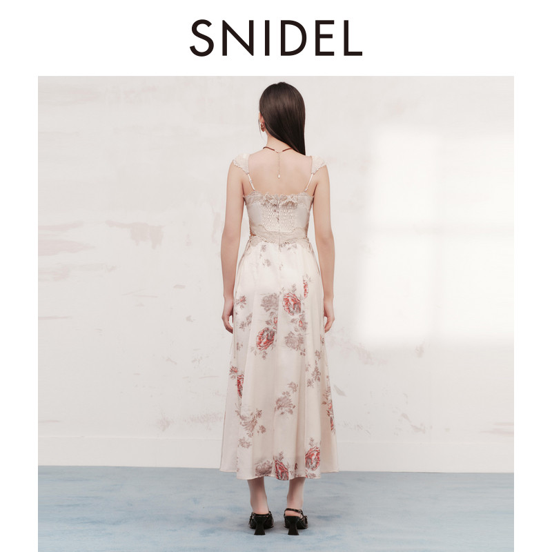 优雅V领蕾丝露腰印花吊带连衣裙SWFO261147 SNIDEL2026春夏新品
