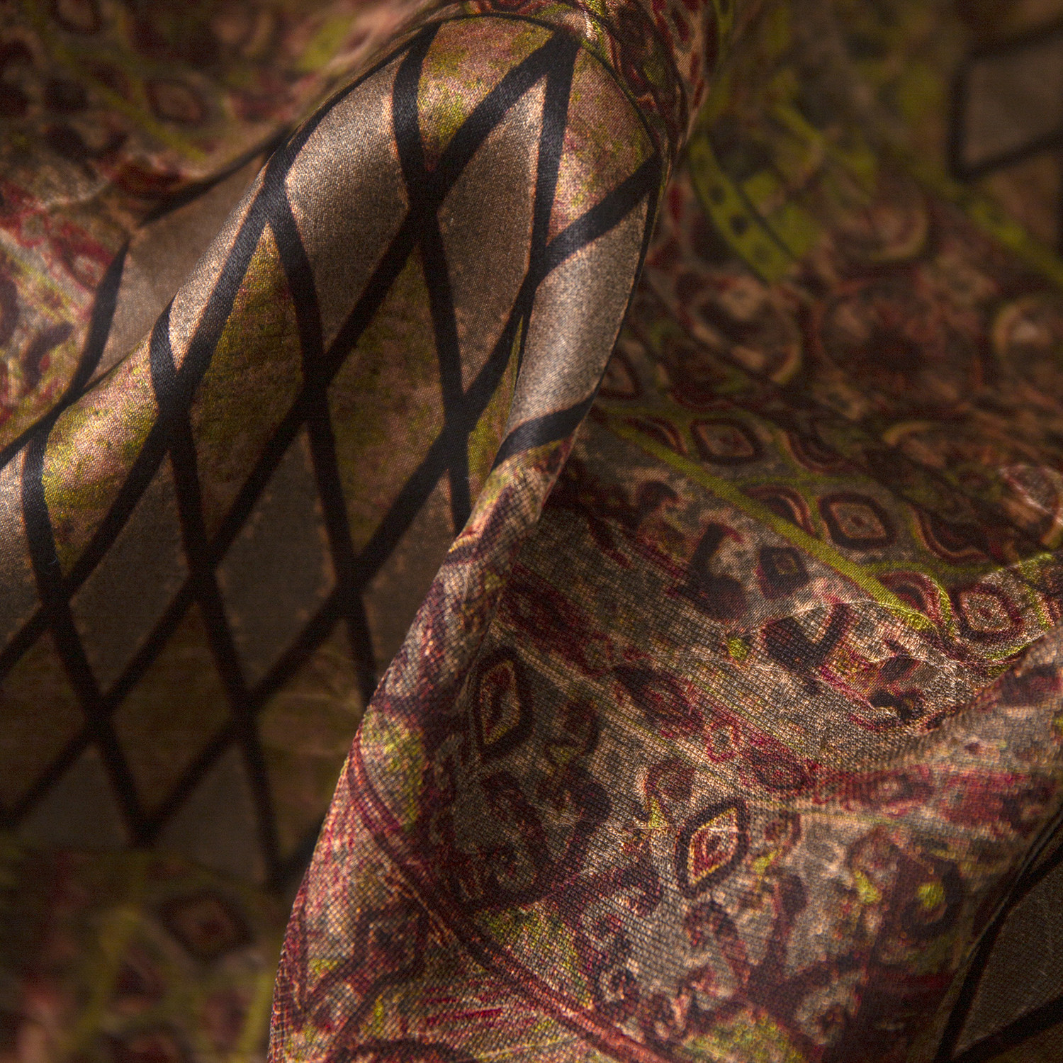 香云纱真丝短袖 妈妈宽松大码 显瘦印花绸缎桑蚕丝T恤衫 上衣女夏季