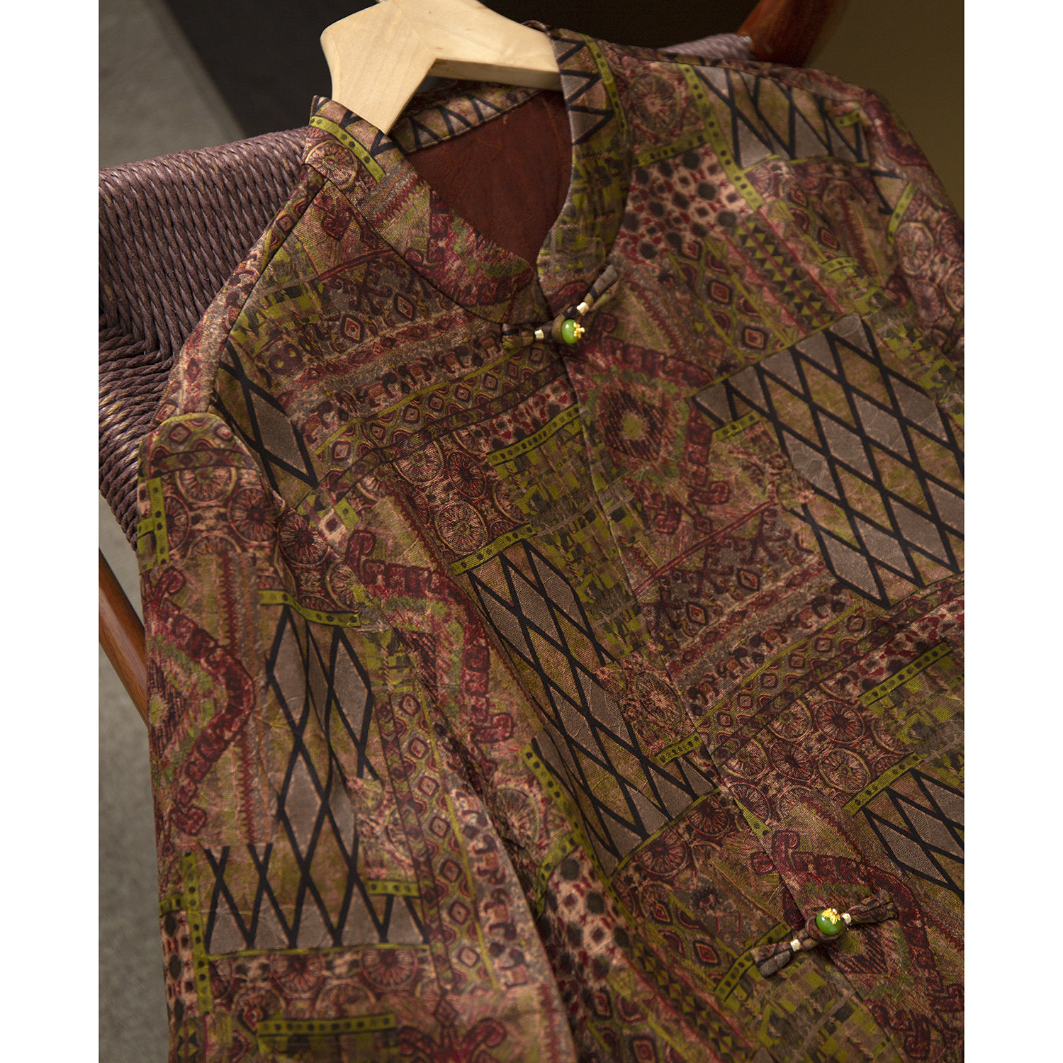 小衫 上衣女新中式 丝艺100%桑蚕丝香云纱花萝国风斜襟盘扣真丝短袖