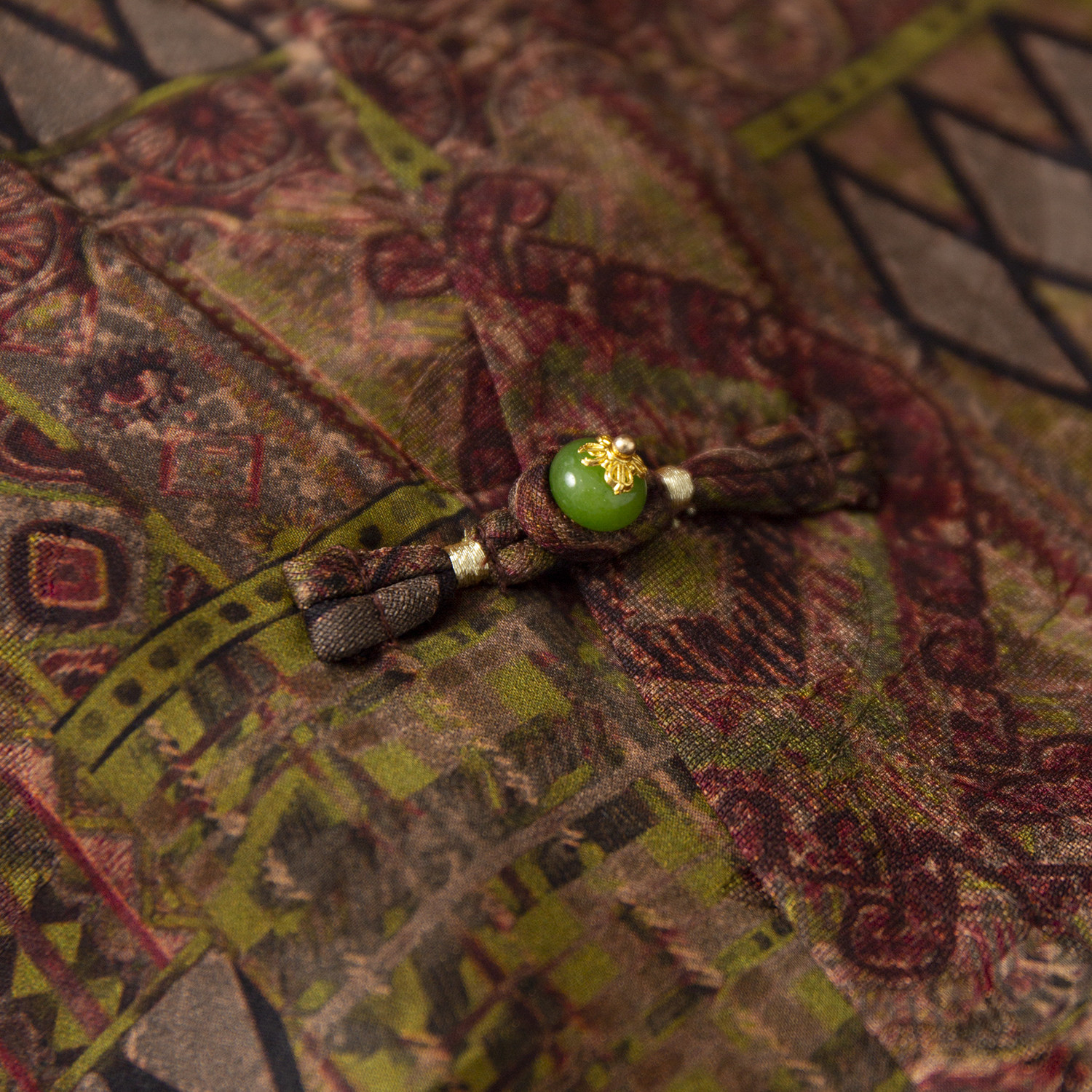 小衫 上衣女新中式 丝艺100%桑蚕丝香云纱花萝国风斜襟盘扣真丝短袖由