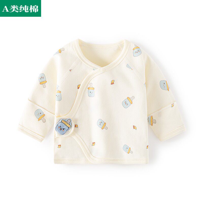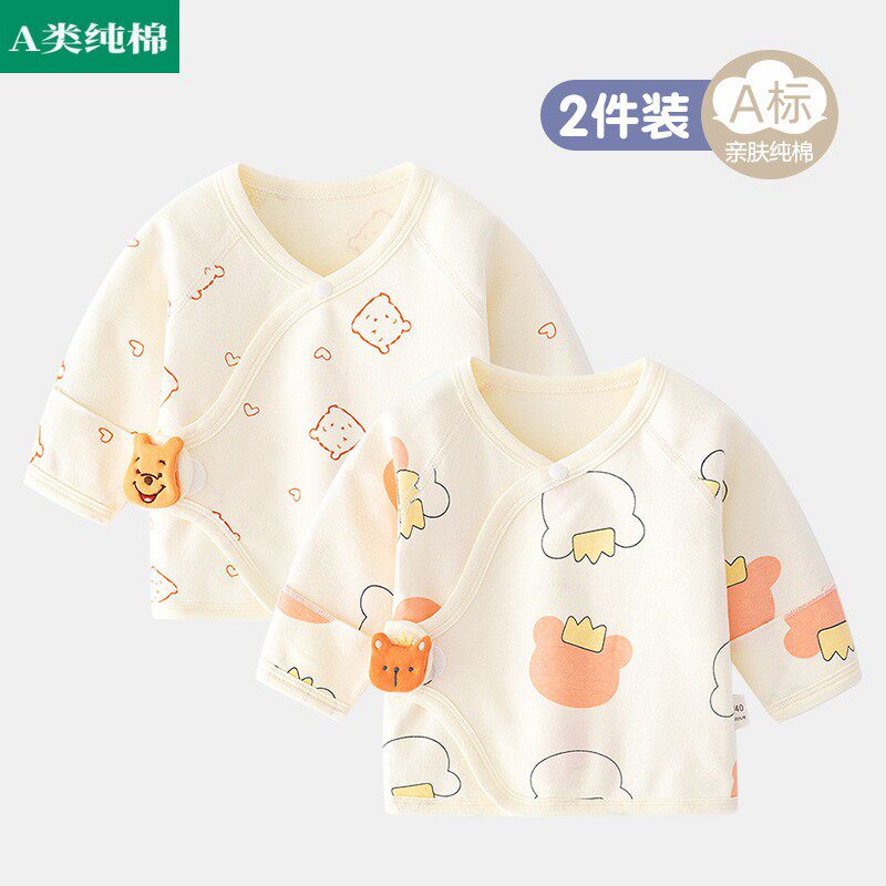 全棉母婴纯棉2件装 3月初生婴儿a类无骨半背衣春秋薄上衣和尚服由
