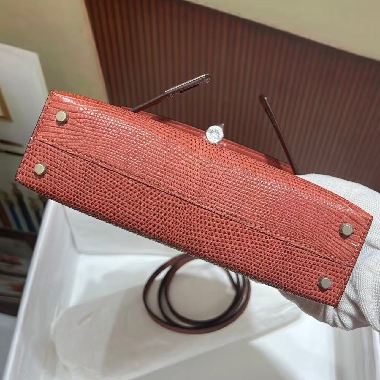 高端私人定制女包进口蜥蜴皮mini凯莉包二代女士单肩斜挎小包手工
