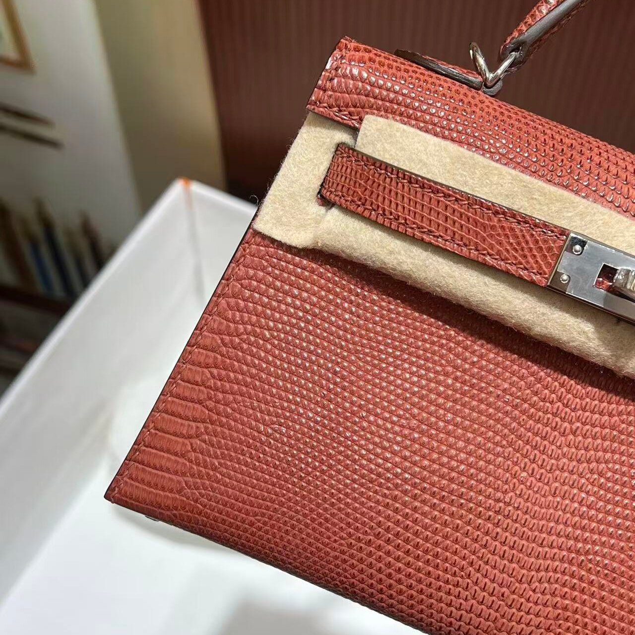 高端私人定制女包进口蜥蜴皮mini凯莉包二代女士单肩斜挎小包手工由