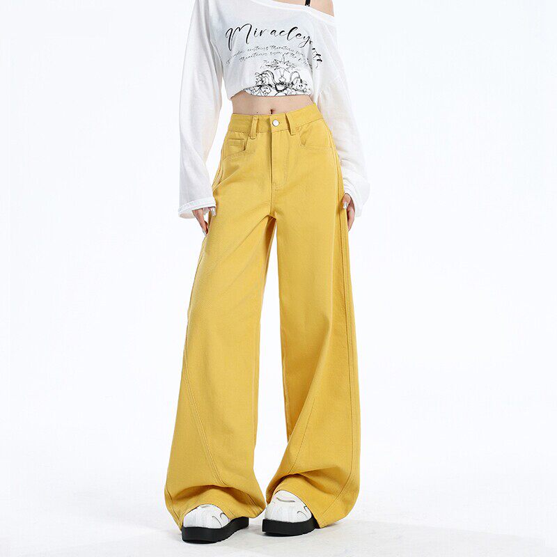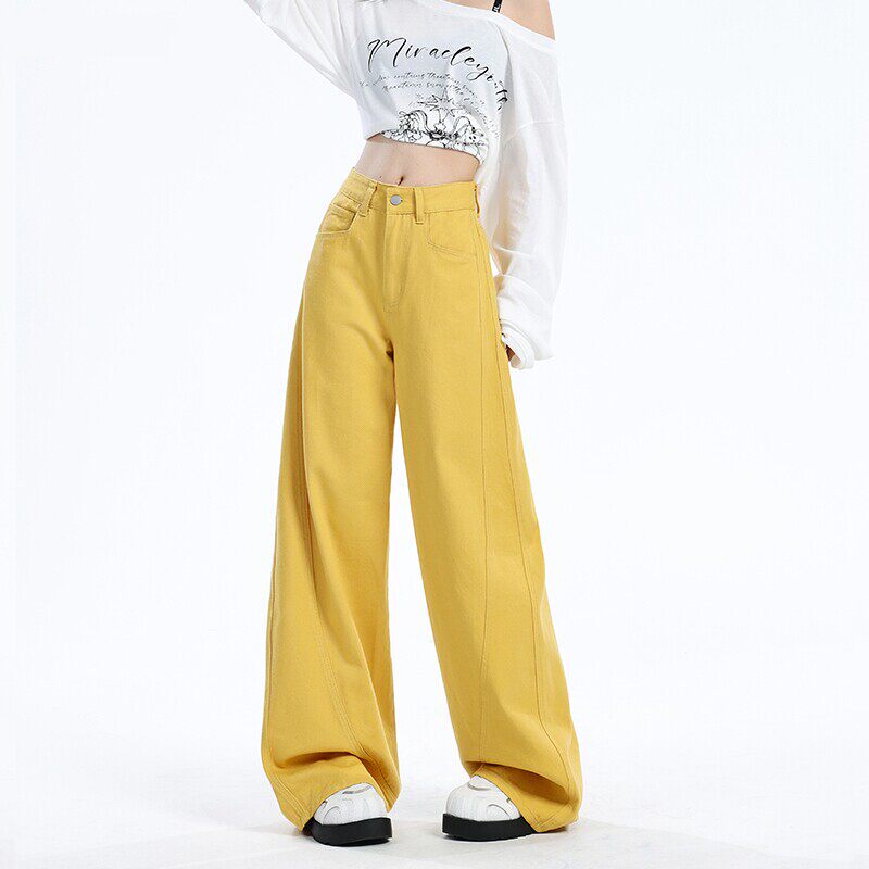 为您提供商品女春秋季 EGG SLY美式 黄色阔腿牛仔裤 子 宽松直筒设计垂感拖地裤的详细介绍,