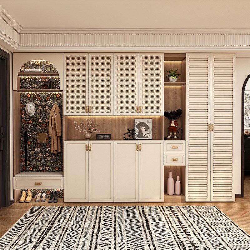 为您提供商品法式 柜玄关柜一体实木加高到顶挂衣储物收纳柜 复古高端入户藤编鞋的详细介绍,
