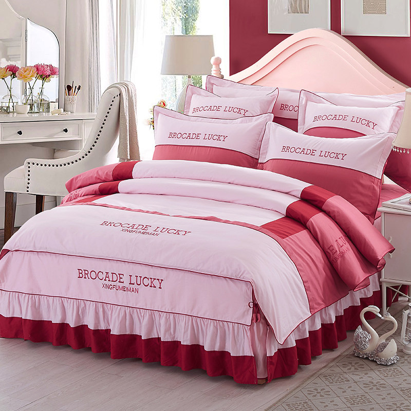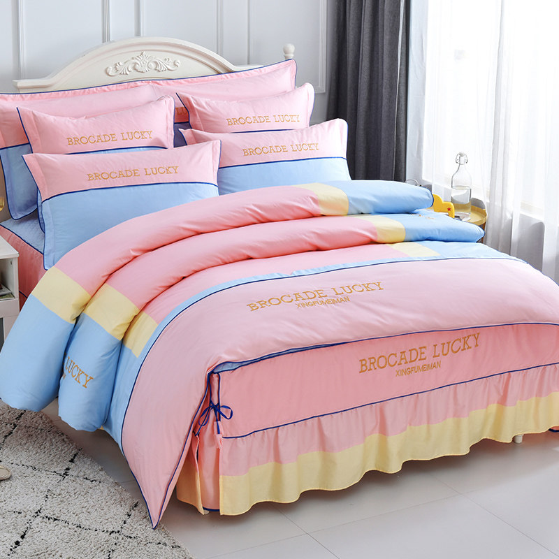 床单被套网红款 简约床上用品四件套全棉纯棉公主风床罩床裙式 欧式