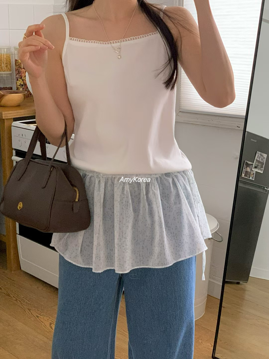 为您提供商品洋气拼纱抽绳 one 吊带连衣裙百搭 东大门 26早春 mone Amy韩代的详细介绍,