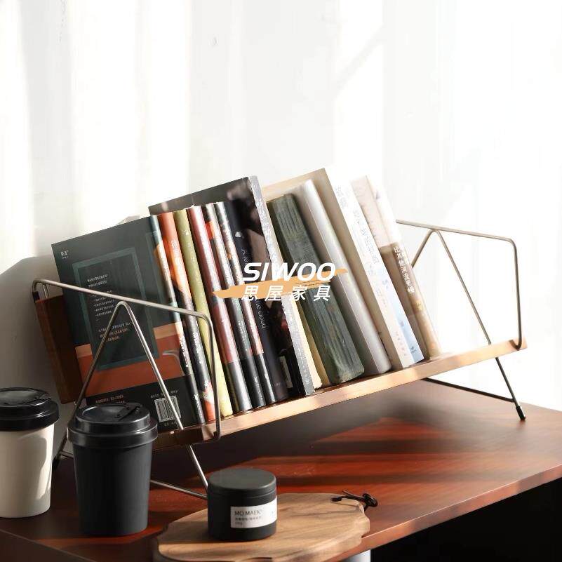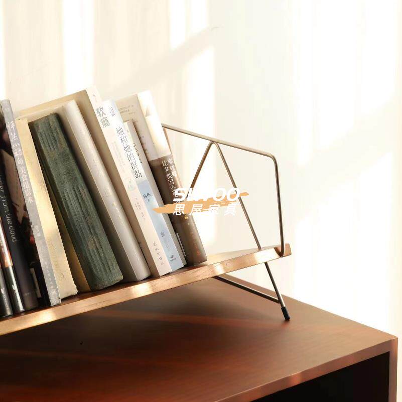 思屋家俱北欧实木小书架桌面书籍收纳层架子办公桌樱桃木覆古置物由