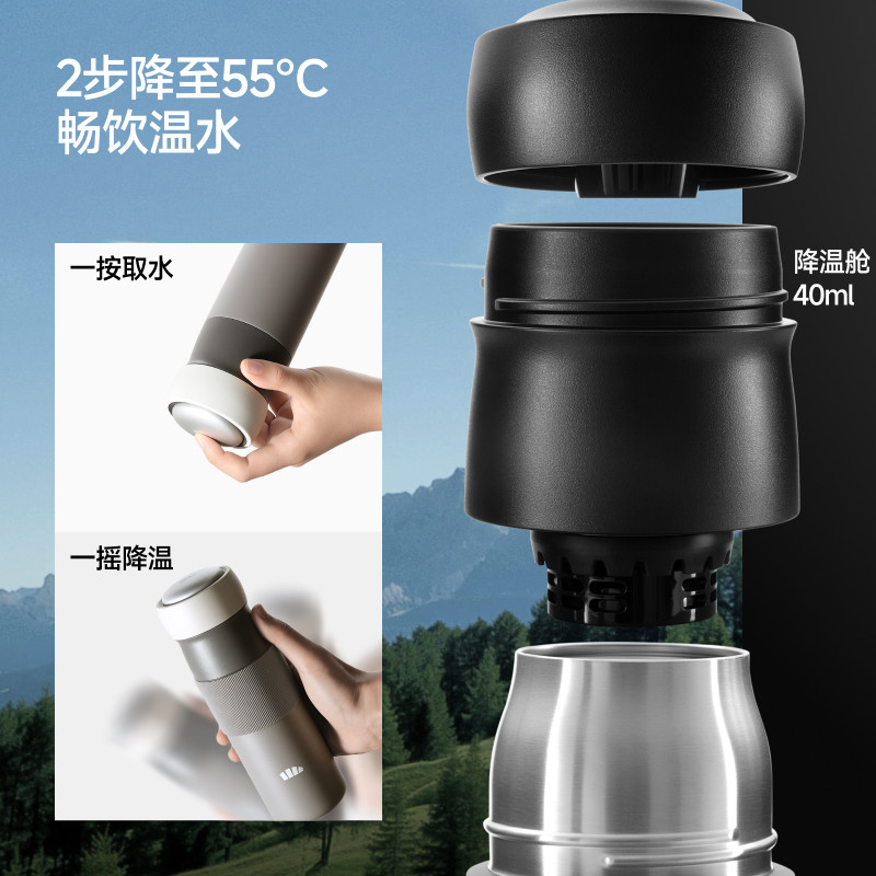 Beneunder双舱有芯变温杯55°C直饮恒温杯便携水杯茶水分离保温杯