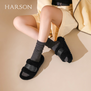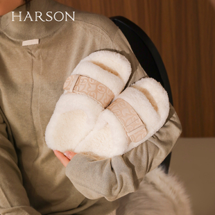哈森加绒保暖毛毛拖鞋 居家外穿棉拖鞋 舒适女鞋 HM261802 2026新款由
