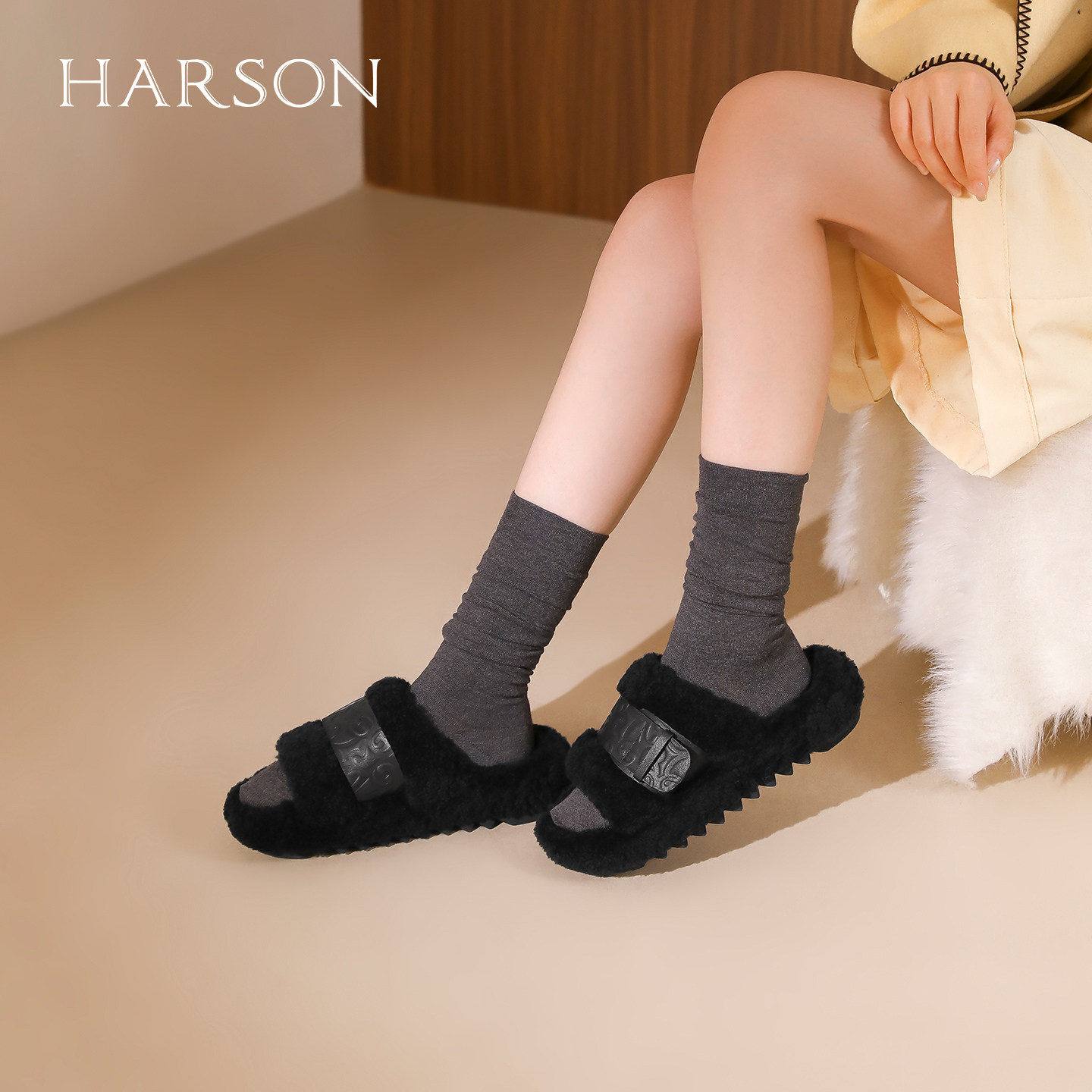 哈森加绒保暖毛毛拖鞋 居家外穿棉拖鞋 舒适女鞋 HM261802 2026新款