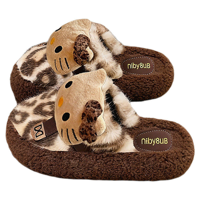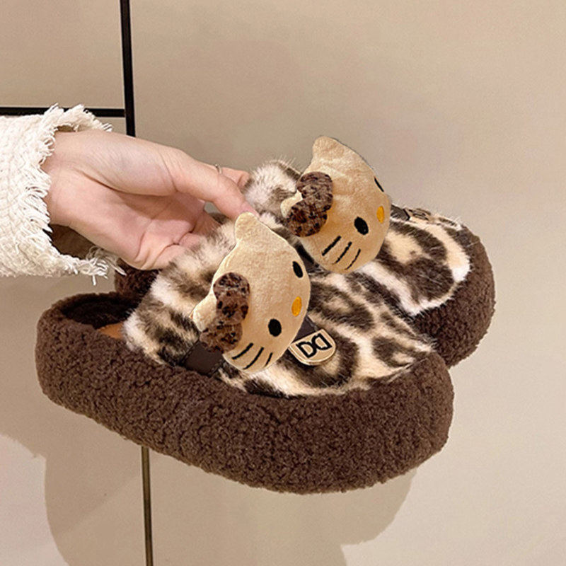 细细条 HelloKitty棉拖鞋 女冬防滑居家可爱毛毛鞋 高级感豹纹正版
