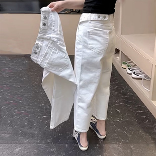 牛仔裤 2026年春夏季 爆款 高腰休闲工装 女纯色纽扣设计感九分阔腿裤