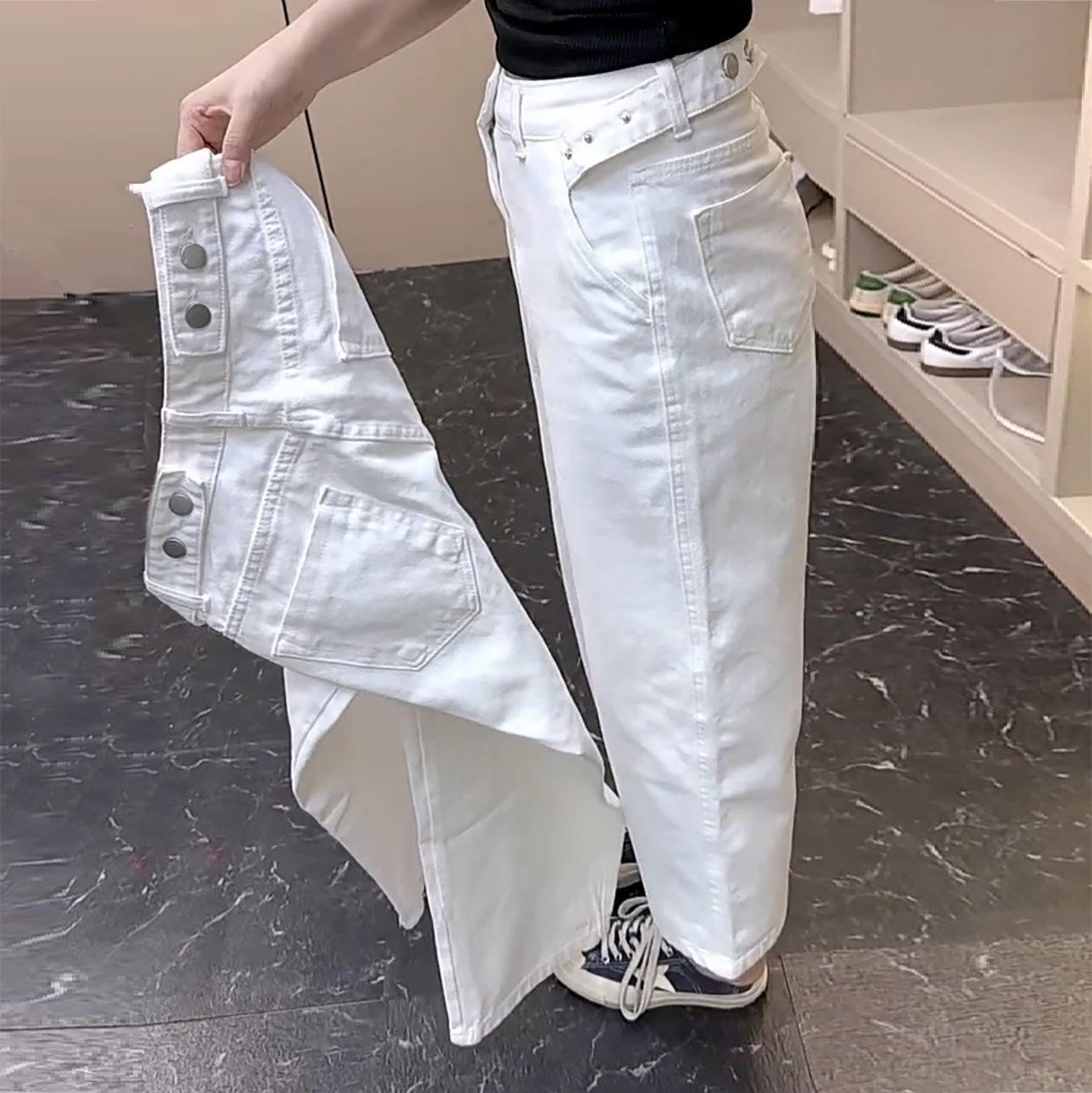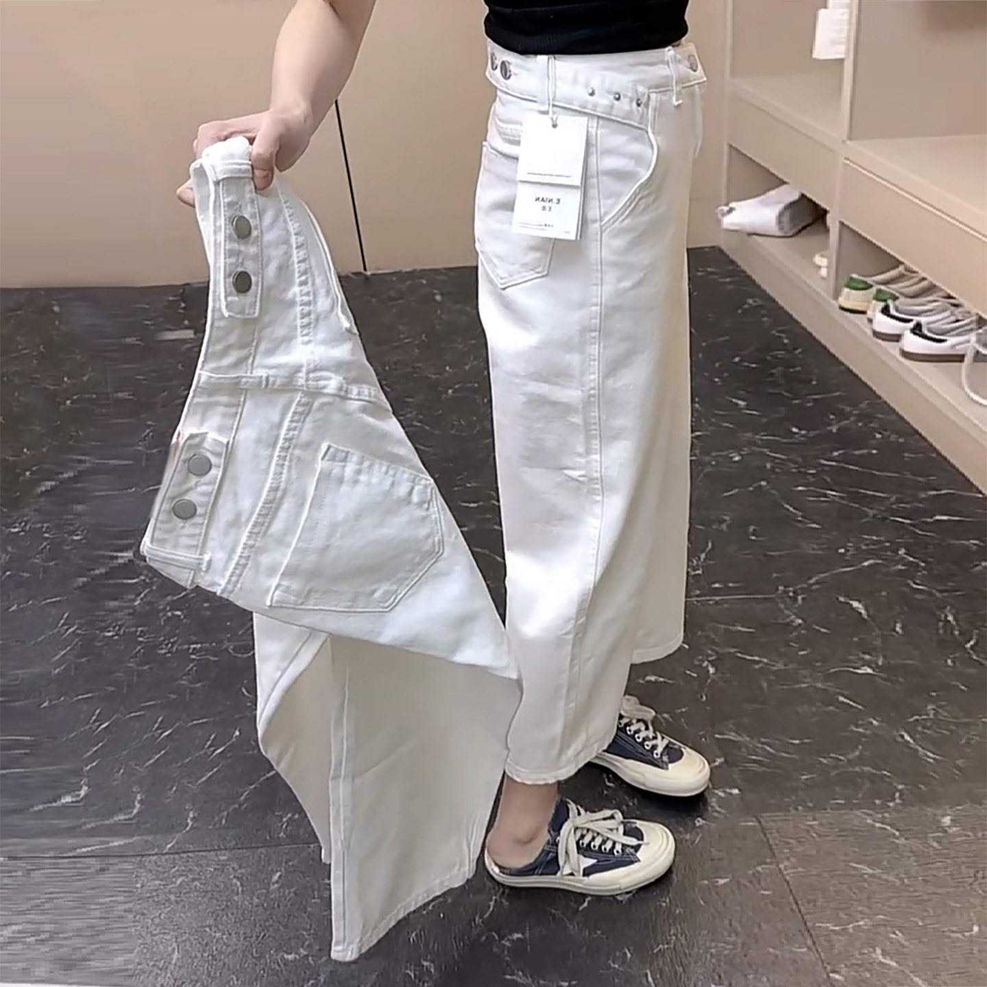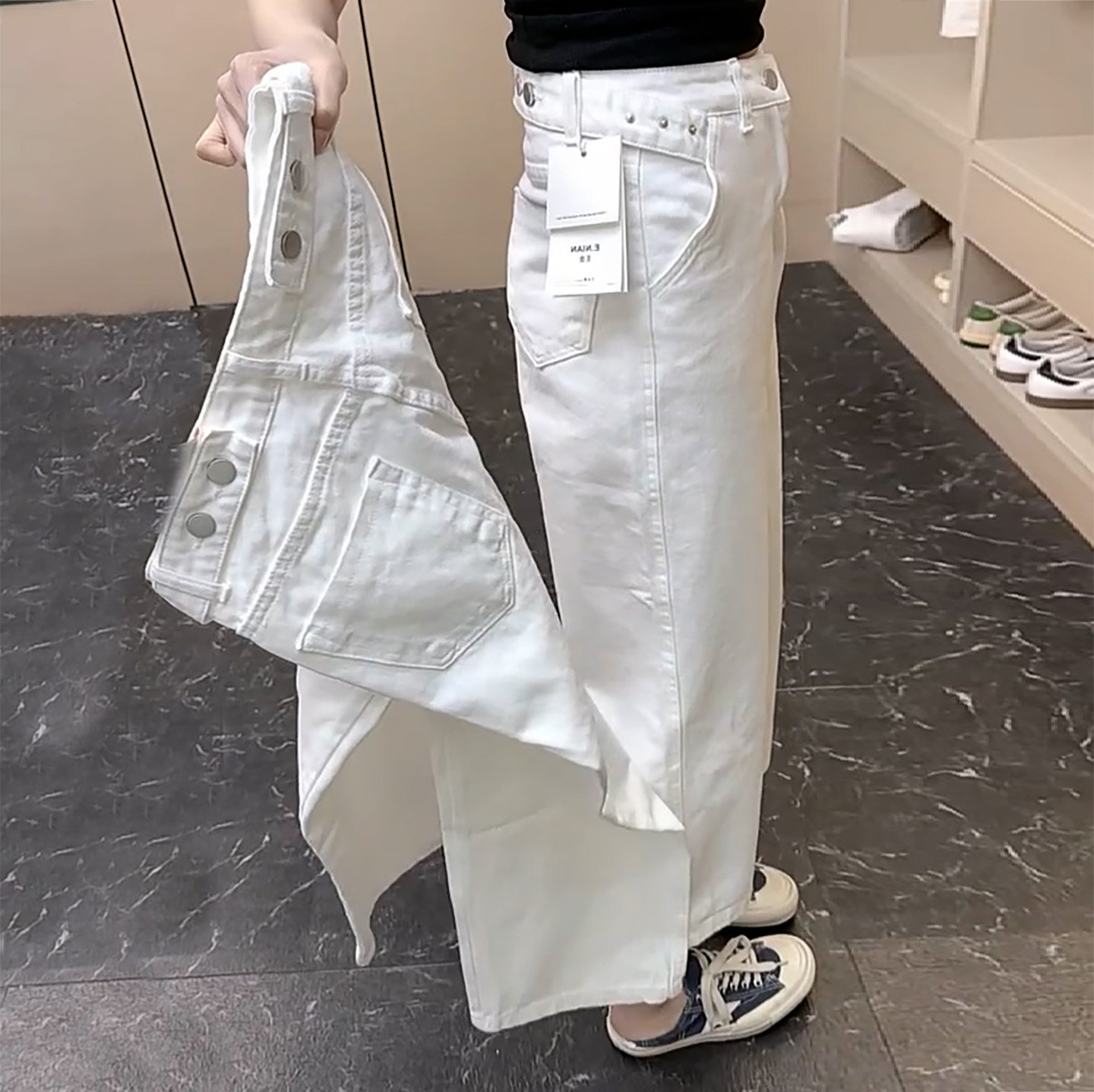 为您提供商品牛仔裤 2026年春夏季 爆款 高腰休闲工装 女纯色纽扣设计感九分阔腿裤的详细介绍,