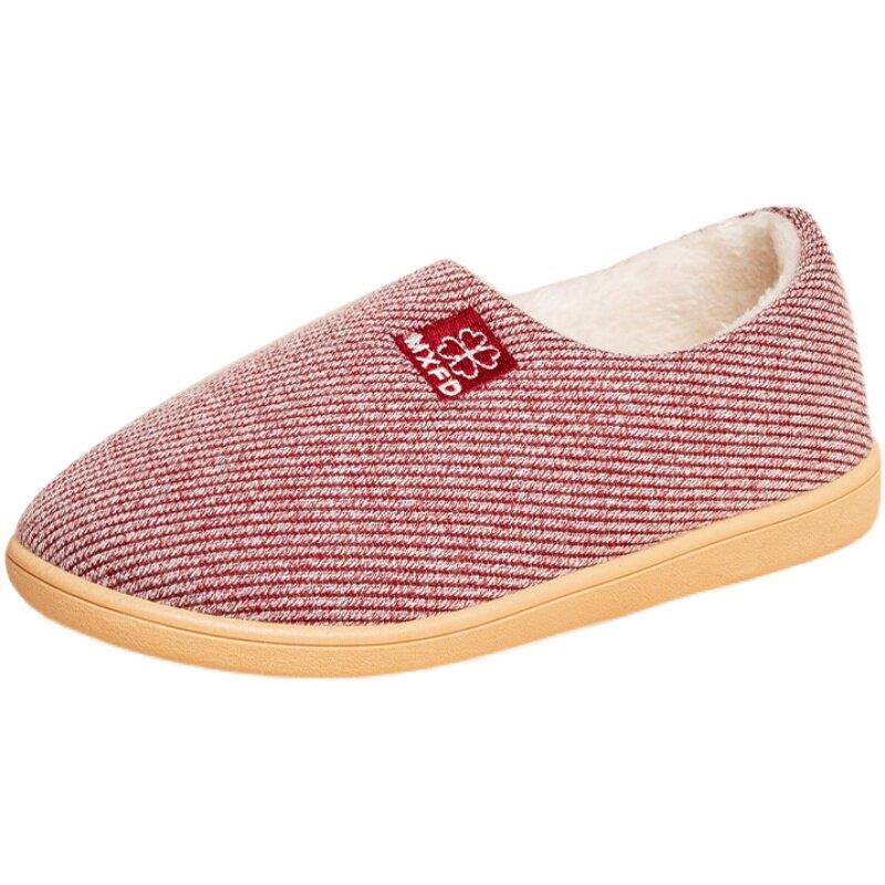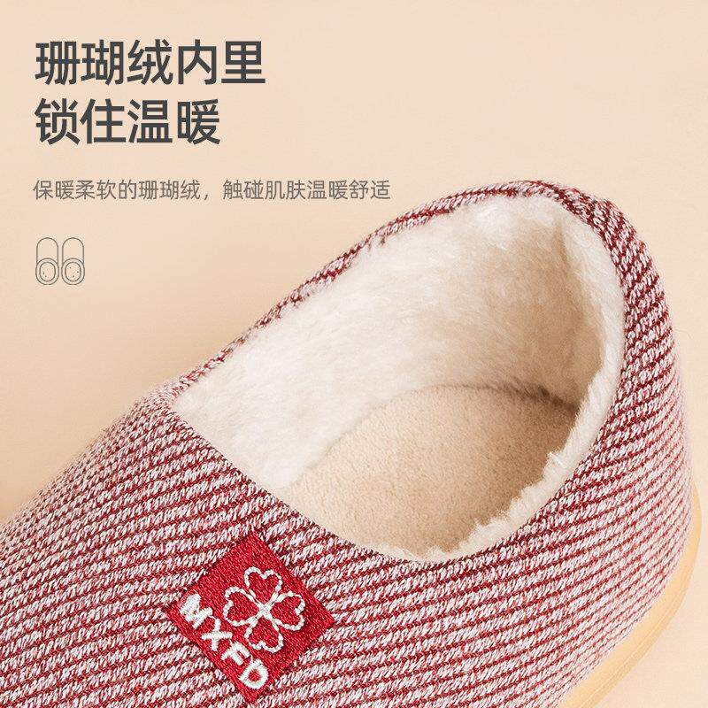 布足缘冬季 老年人包跟厚底家居室内防滑月子带后跟外穿 女士棉拖鞋