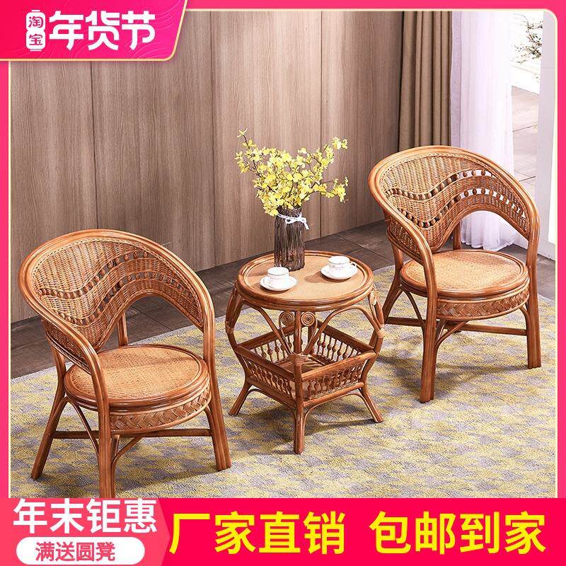 天然真藤椅三件套腾编椅阳台小桌椅滕条单人休闲椅茶几家用组合