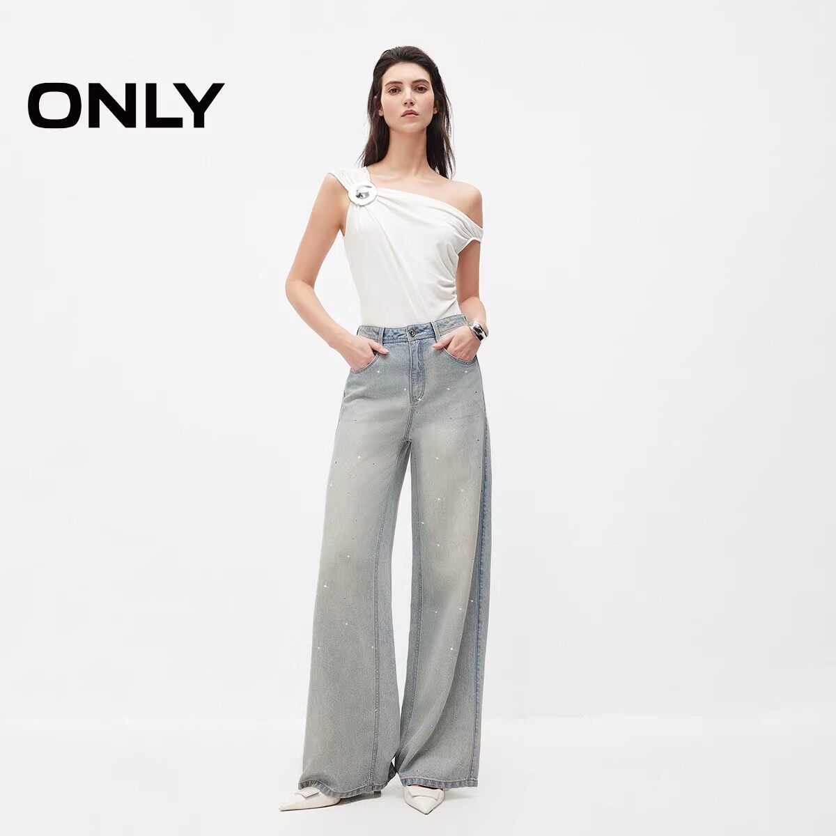 新款 莱赛尔满天星 ONLY2026夏季 女 舒适垂坠宽松直筒老爹牛仔裤由