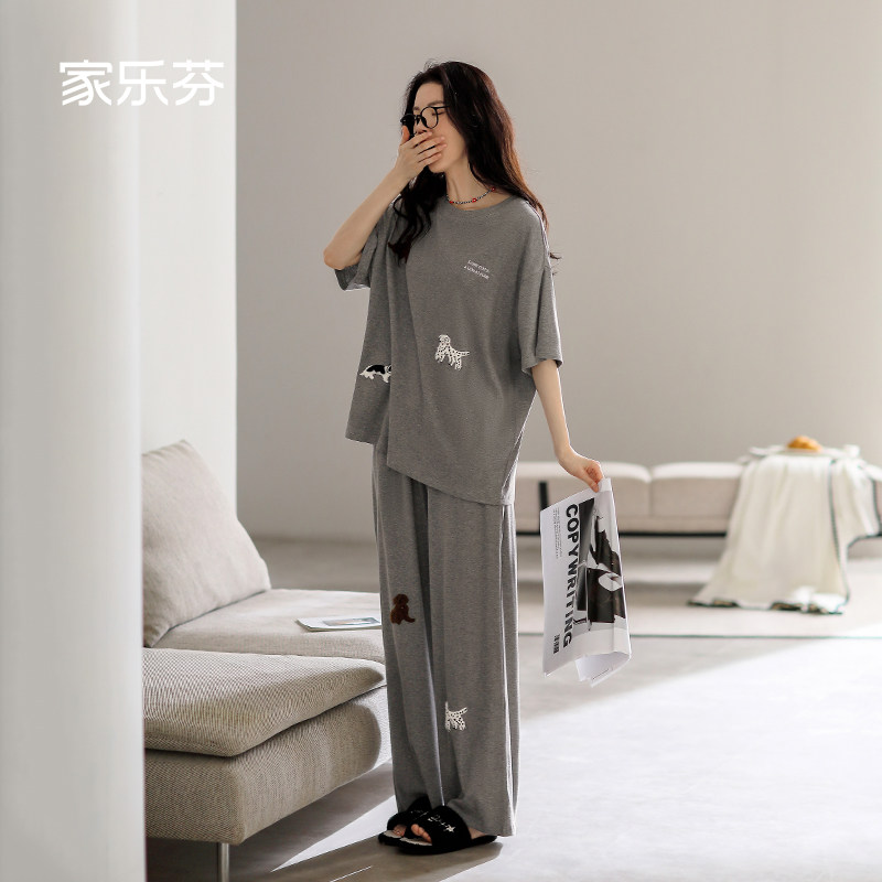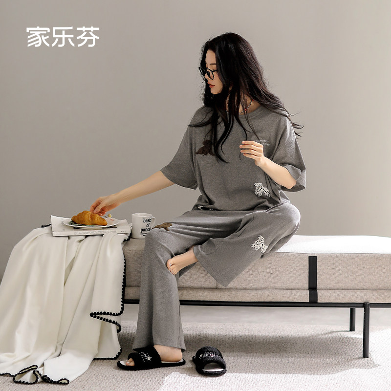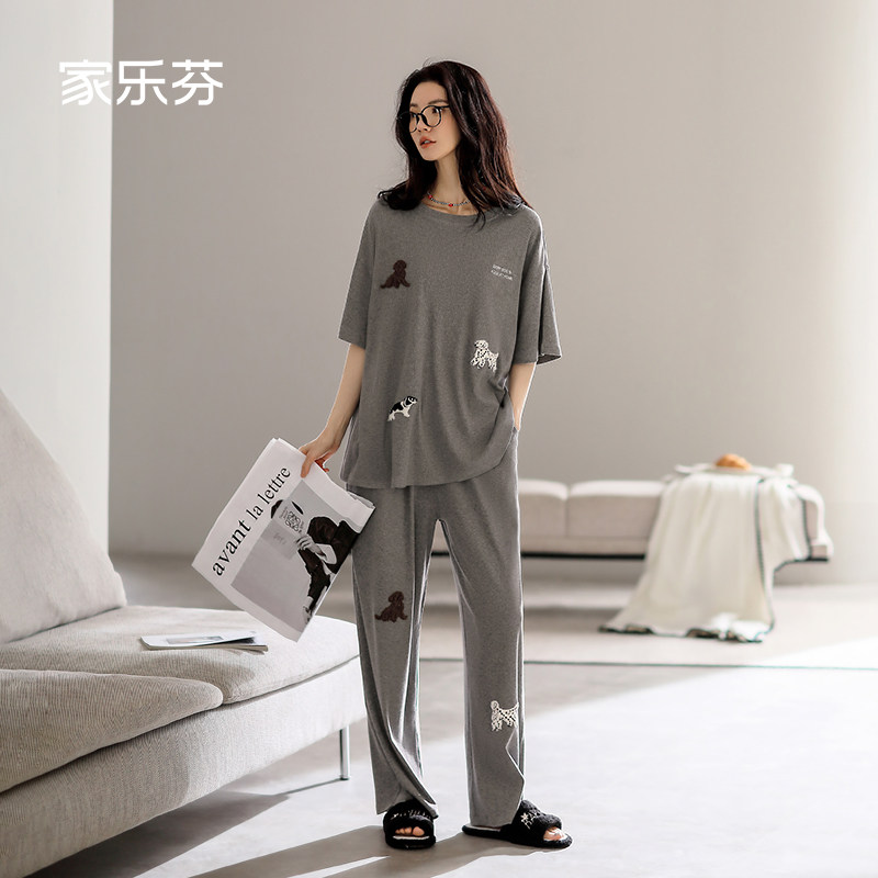 长裤 家乐芬睡衣女夏季 夏款 夏天短袖 休闲小狗可外穿 纯棉家居服大码