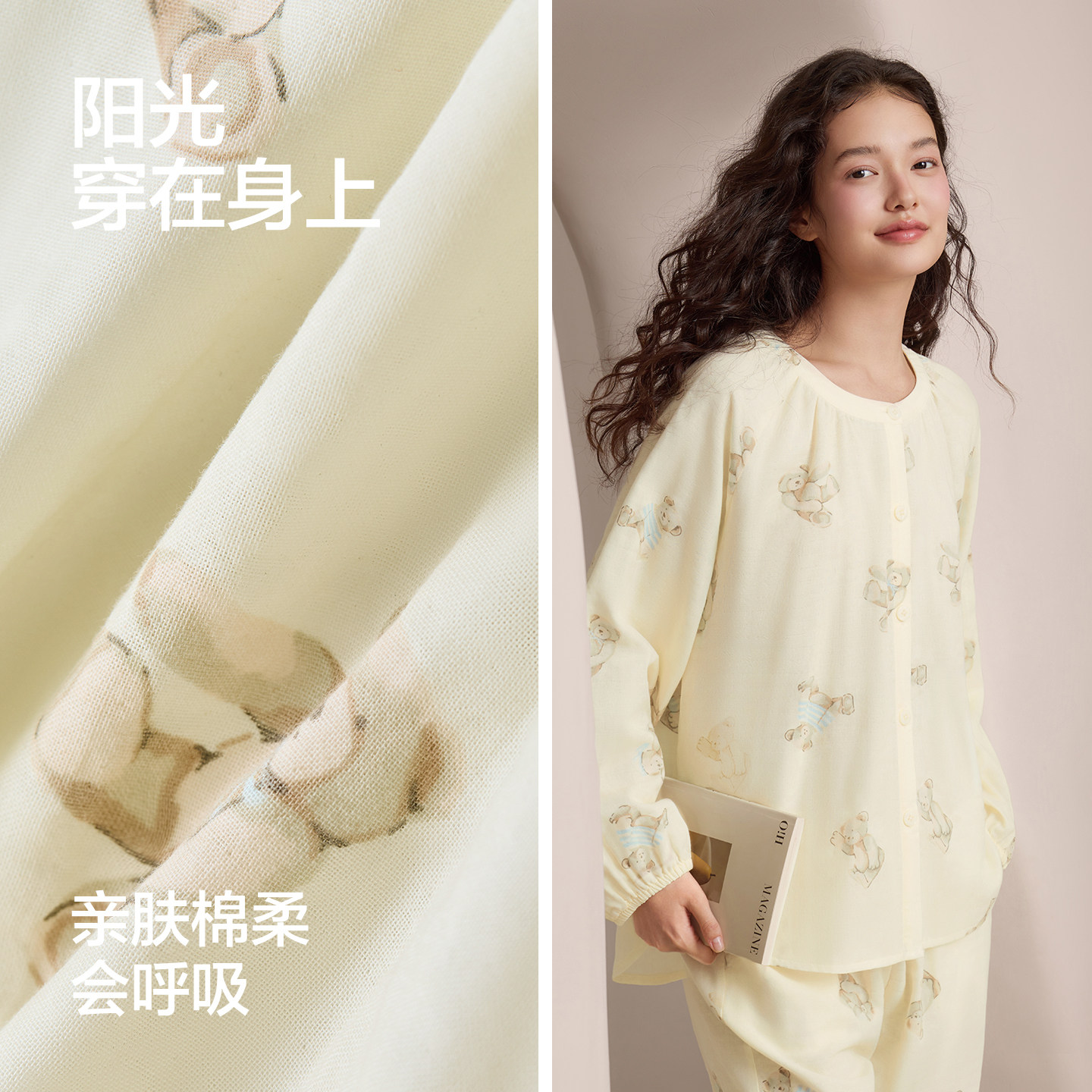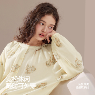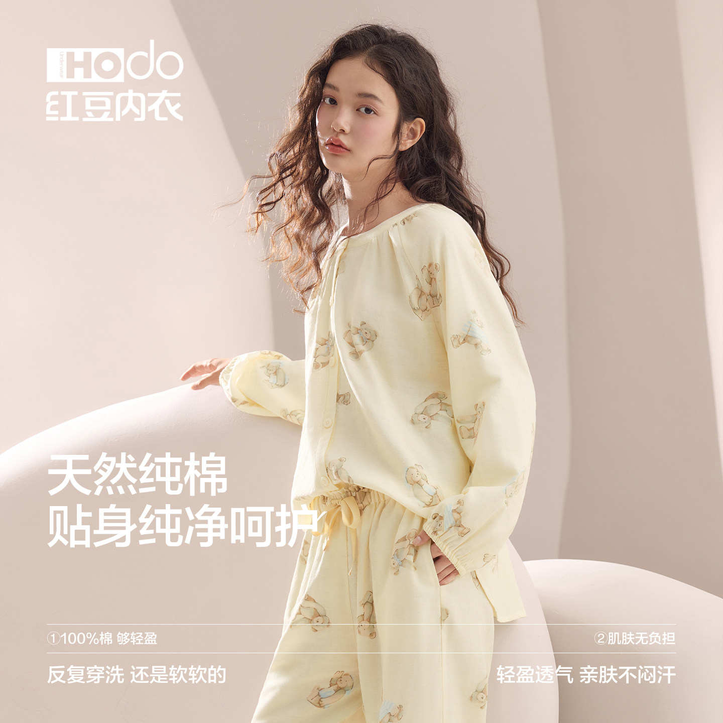 为您提供商品26春夏小熊印花家居服可爱呼吸棉透气 红豆女士双层纱纯棉睡衣套装的详细介绍,