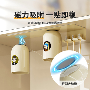 牙刷置物架免打孔倒挂漱口杯不锈钢壁挂镜柜下电动牙刷杯架 磁吸式