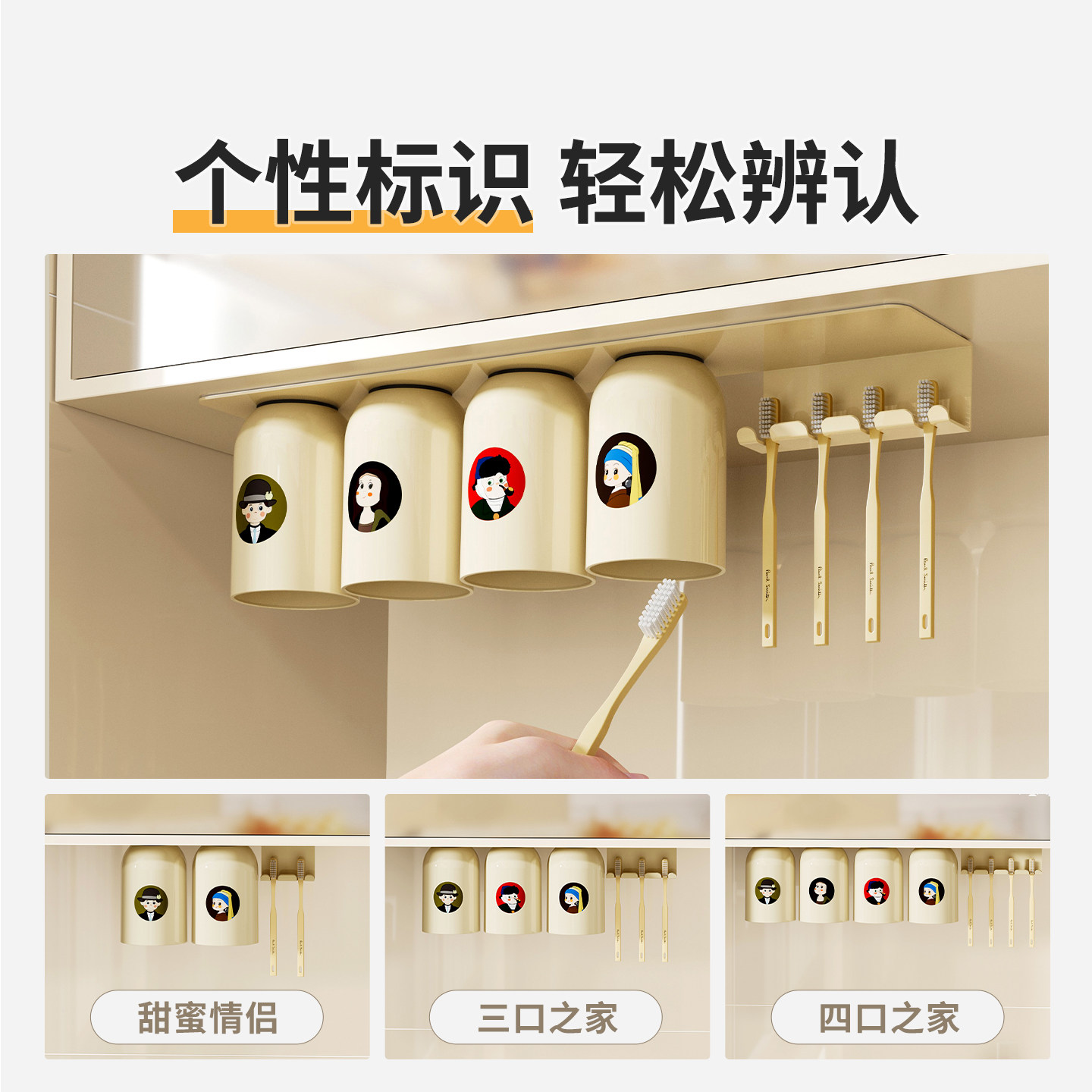 免打孔卫生间牙具座牙膏收纳浴室 牙刷牙杯壁挂置物架电动牙刷套装
