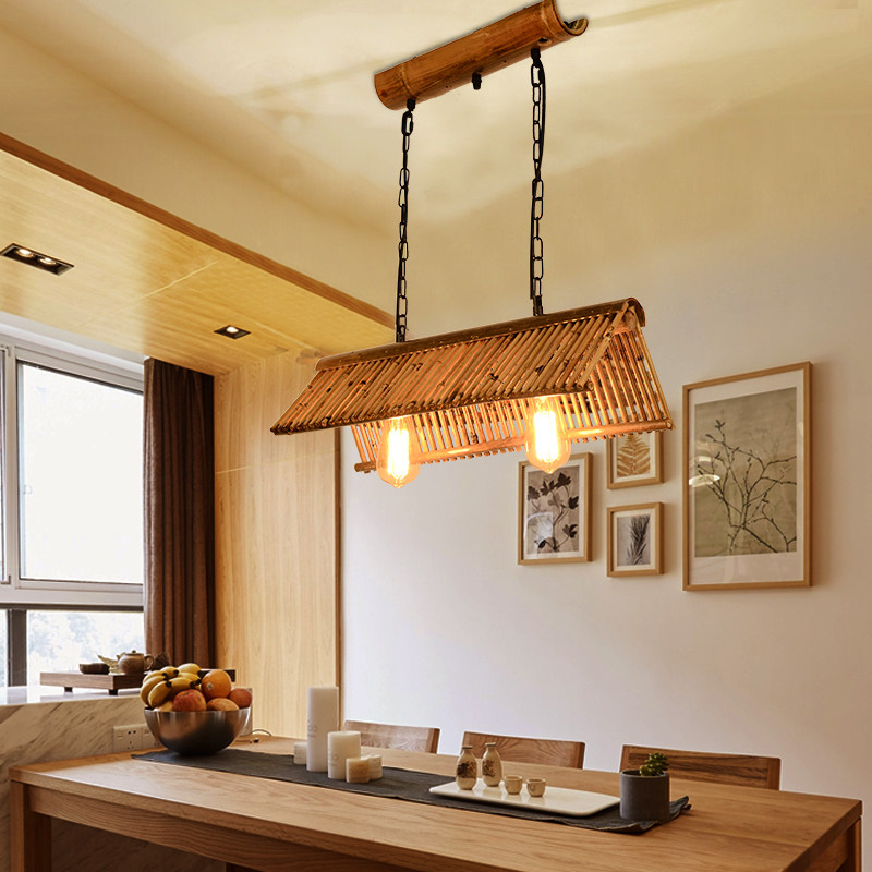 茶室长形灯民宿原生态竹艺灯具创意餐厅竹灯 东南亚竹编吊灯中式