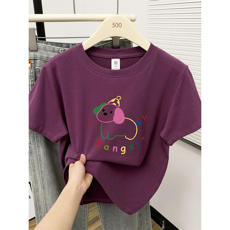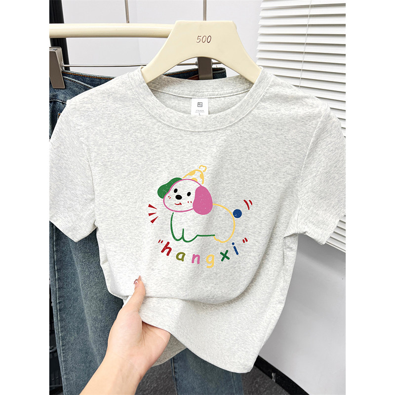 小个子微胖大码 正肩弹力上衣小狗减龄修身 遮肉显瘦短袖 t恤女 女装