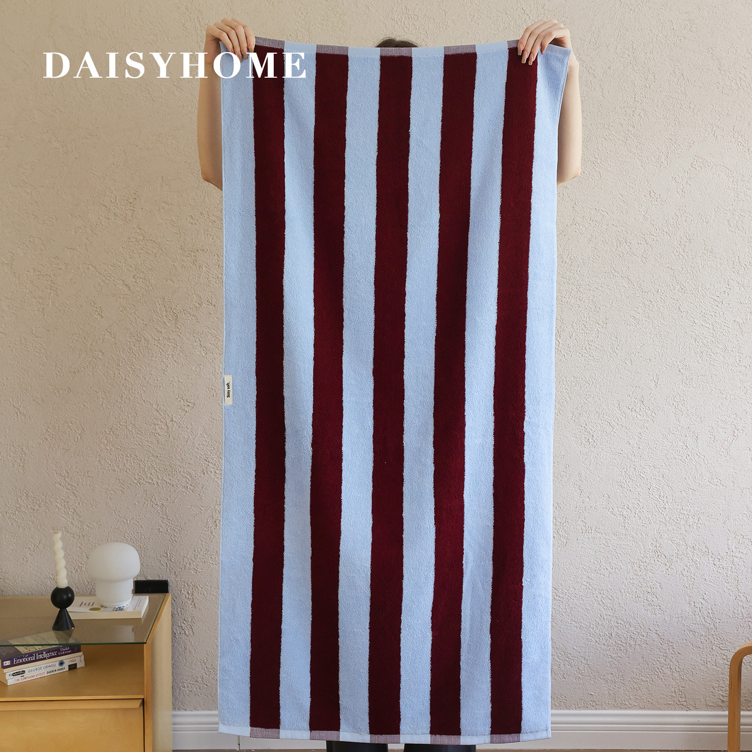 DAISYHOME小众中古宽条纹撞色毛巾浴巾纯棉柔软亲肤大人小孩通用由