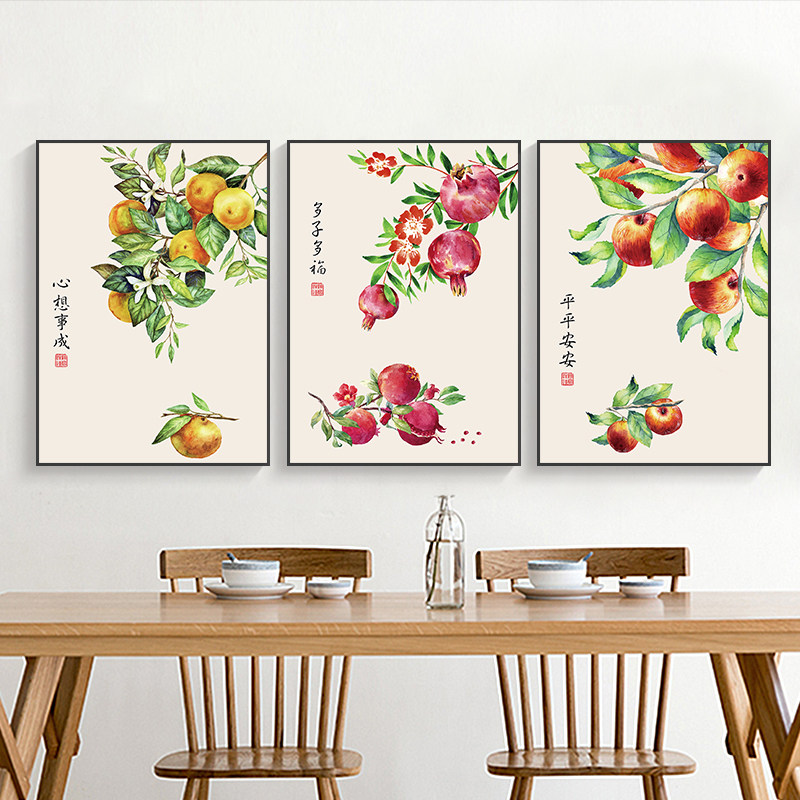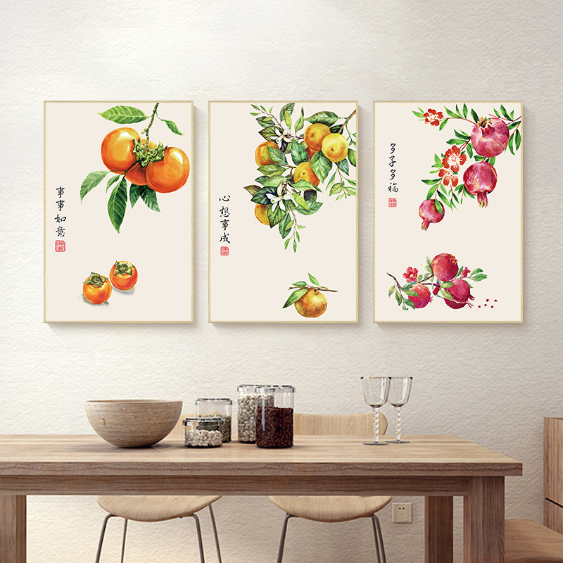 百特好新中式 饰画石榴水果餐桌饭厅挂画厨房壁画中国风 餐厅墙面装