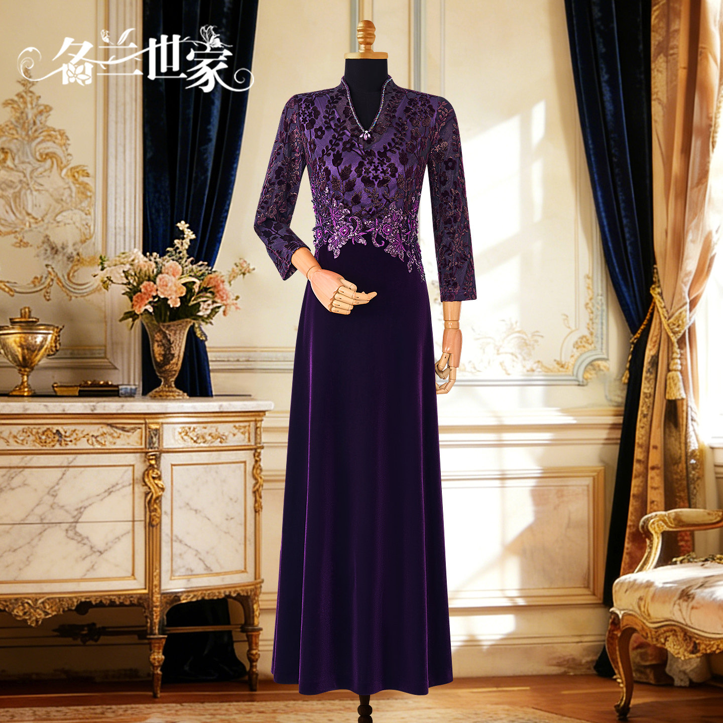 喜妈妈婚宴礼服高端轻奢高级2026新款 订婚喜服连衣裙 婆婆礼服晚装