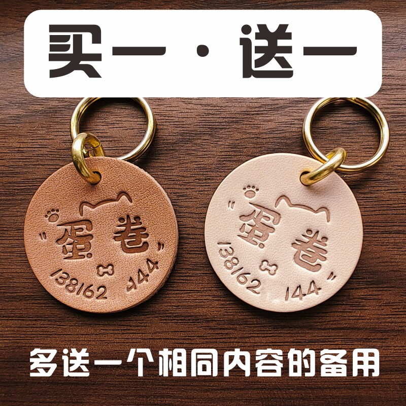 木夏秋定制狗牌宠物牌项圈刻字猫咪狗狗项圈挂牌真皮铭牌防丢猫牌由