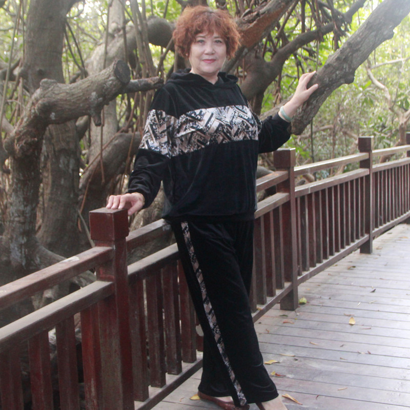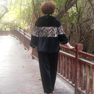 为您提供商品中老年女士春秋金丝绒连帽两件套加肥大码 胖妈妈宽松洋气运动套装的详细介绍,