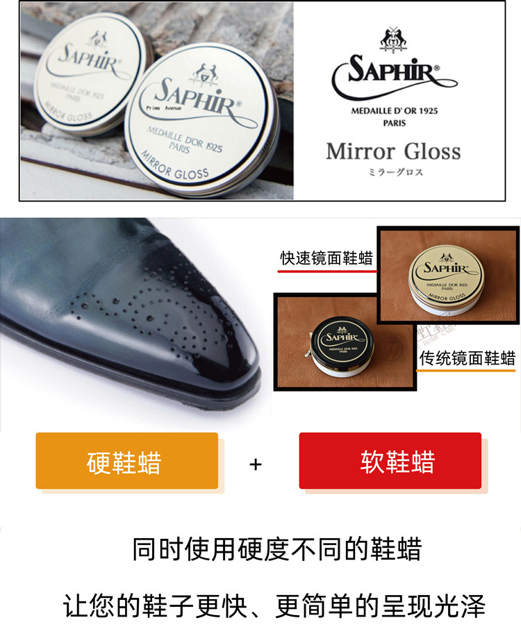 抛光蜡硬蜡 莎菲雅SAPHIR黑金镜面蜡 MIRROR GLOSS 镜面抛光 皮鞋由