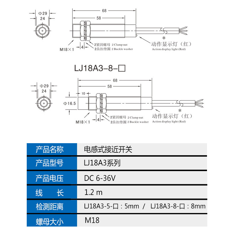 为您提供商品沪工接近开关LJ18A3 BX三线传感器npn常开24v电感式 感应器m18的详细介绍,