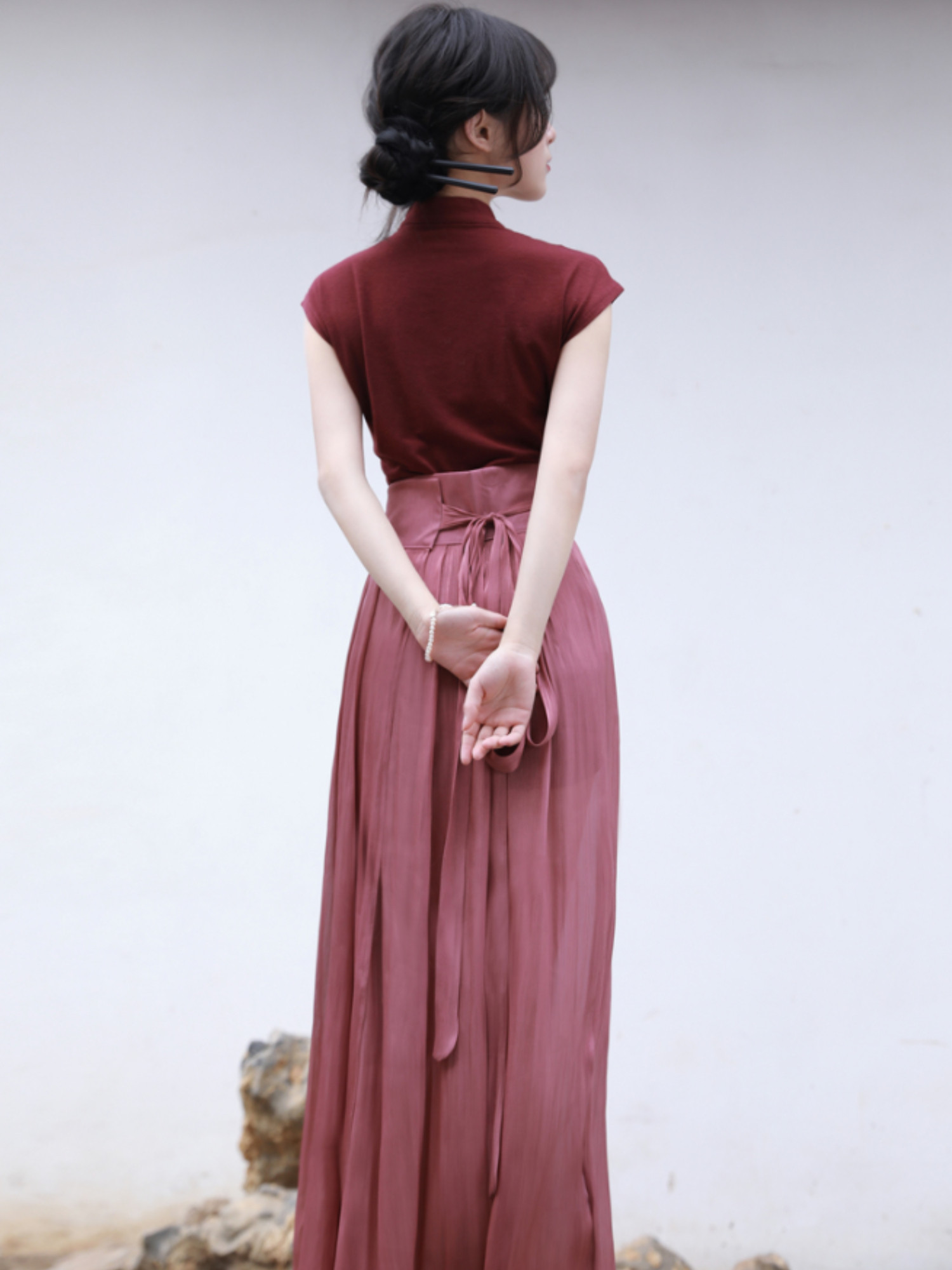 为您提供商品新中式 国风套装 仙气禅意香云纱茶服复古红色长款 连衣裙两件套 女装的详细介绍,